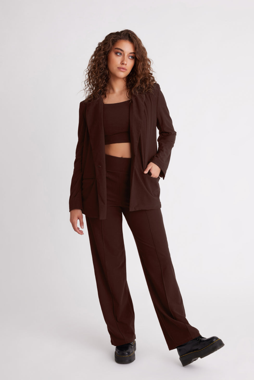 Your boss called, they said it’s time to return to office. The bright side? We’ve designed the perfect Working Girl capsule wardrobe. Comfortable enough to wear all day at your desk and cute enough to wear to drinks with your coworkers after. Featuring two pockets, a fabric button and an oversized fit. Made using post-consumer recycled plastic — 84% RPET and 16% spandex.