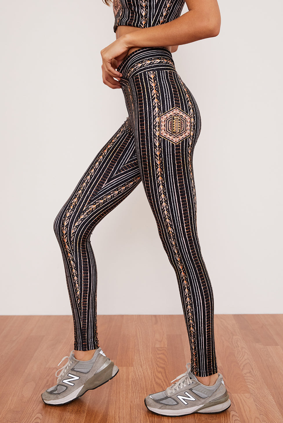 Zephyr features a central serpent totem, representing the power of transformation — shedding and beginning anew. With a contrasting palette of black and gold, this haute couture-inspired print is worthy of your big night out. Pairs well with the Zephyr Keyhole Top.