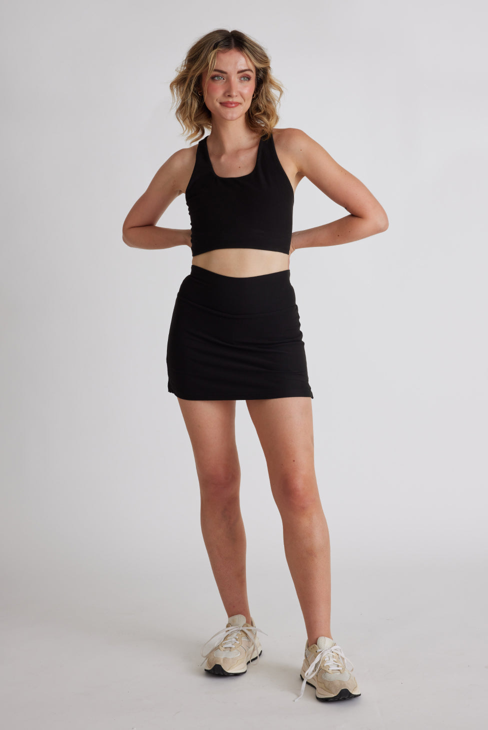 The Tennis Skirt. An American Classic. Stylish, Sexy. Made from our signature fabric, it flows just right. Fitted throughout, natural waist. With built in shorts, you’ll never forget your keys again.