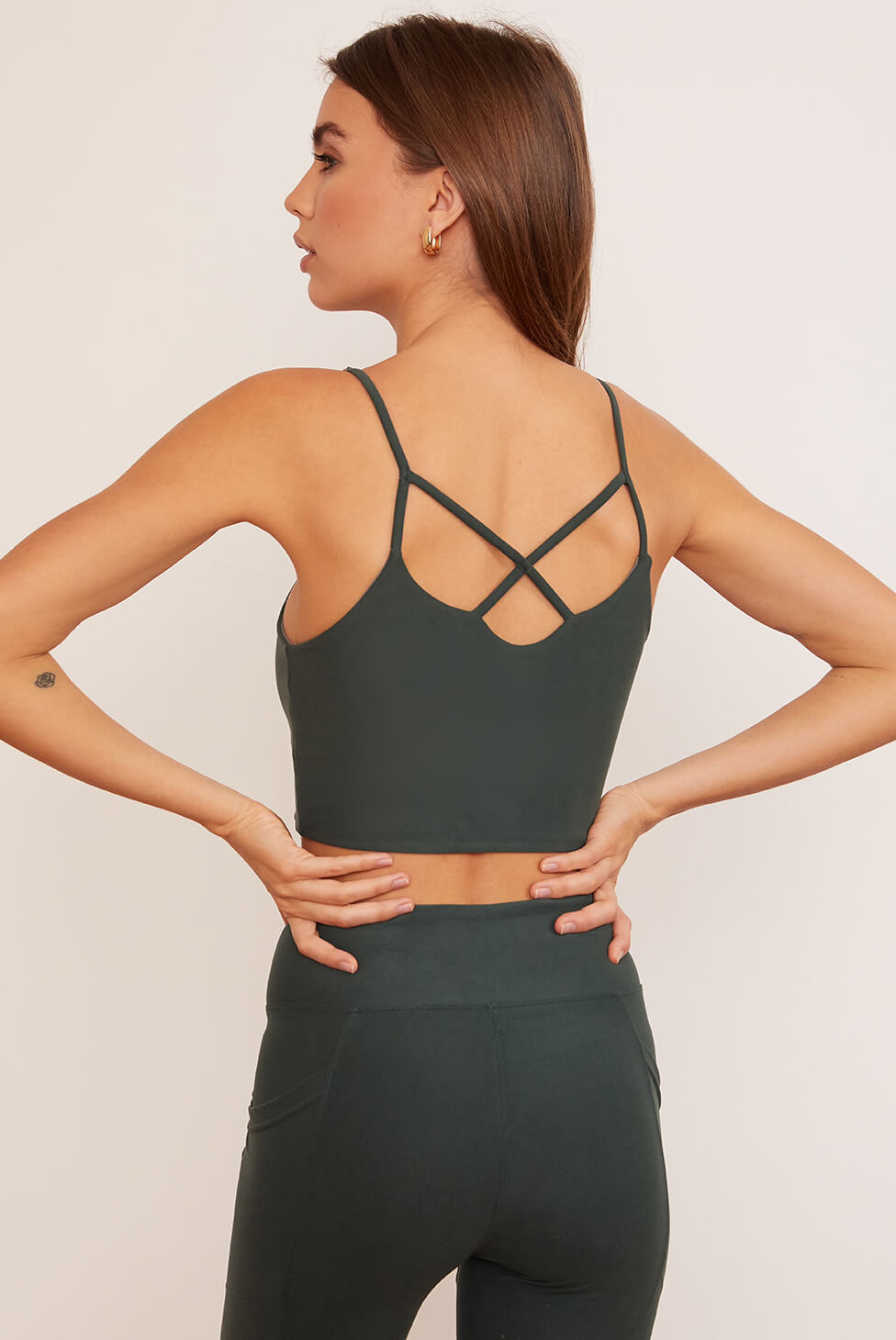 One top, four ways — because sustainability is magical. Wear this miracle of a top with the sexy crisscross detailing in the front or turn it around for a sporty high-neck. For our next trick, flip it inside out for a color-blocked look. Featuring adjustable straps, this mid-length top is your sustainable staple. Oh, and it's lined for just the right amount of coverage. See? Magic. Made using post-consumer recycled plastic — 84% RPET and 16% spandex.