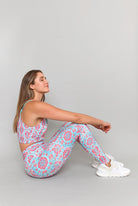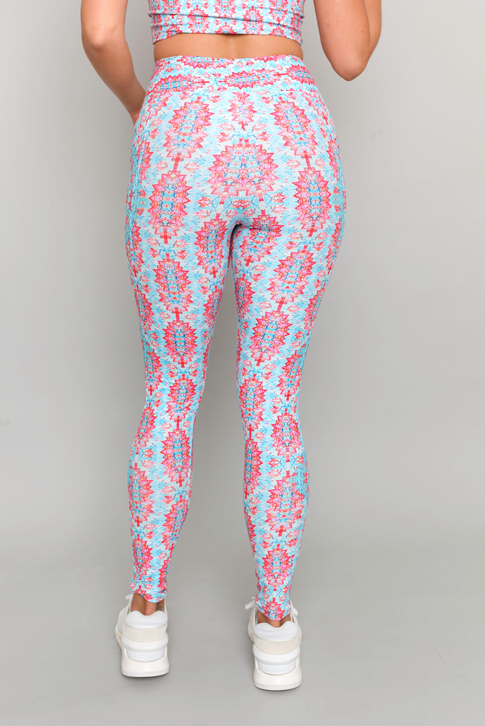 Vibrant hues of turquoise and oceanic coral combine for a coastal-inspired aura, designed for the wanderlusters. This print is a standalone stunner, but pairs perfectly with natural stones and textures for a full-on bohemian vibe. With minimal slip pockets and a straight, high-waisted band, this legging seamlessly blends function with form. Pairs well with the Amalfi Crisscross Four-Way Top.
